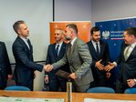 Podpisanie kontraktu (od lewej): Łukasz Świerkowski (Project Manager PORR S.A.), Piotr Kledzik (Prezes Zarządu PORR S.A.), Paweł Woźniak (Dyrektor GDDKiA), Łukasz Lendner (Dyrektor szczecińskiego Oddziału GDDKiA)
